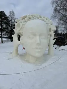 From Santa’s Village, I went to the wonderful Arctic Snow Hotel & Glass Igloos about a 45-minute drive away (see map above, in Lehtojarvi). This turned out to be a highlight of mine, as you can see from all the photos I took. I’d encourage everyone to make this trek. Click on any image to see it better.